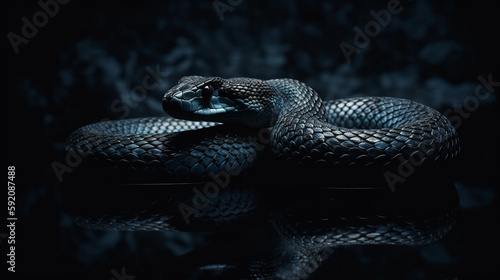 © Artvibe, Obraz premium Image of snake on black background with water drops.generative ai