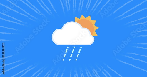 Fototapeta premium Image of spinning sun with cloud over white stripes on blue background