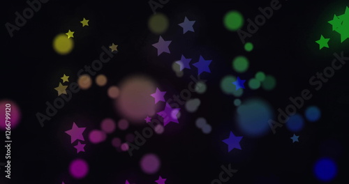 © vectorfusionart, Fototapeta premium Image of spots and stars moving on black background