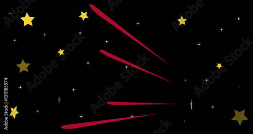 © vectorfusionart, Fototapeta premium Image of stars and red lines on black background