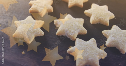 © vectorfusionart, Fototapeta premium Image of stars floating over homemade cookies