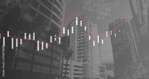 Fototapeta premium Image of statistics processing over cityscape