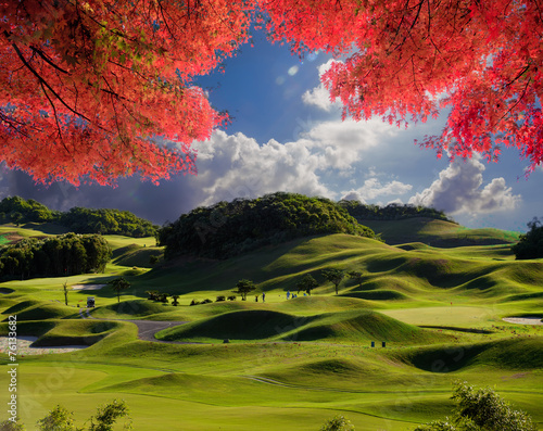 © nicholashan, Obraz premium Image of the sacred mountain of Fuji in the background of blue s