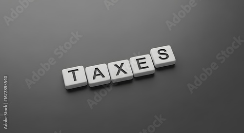Obraz premium Image of the word "TAXES" in white capital letters on small white square tiles.