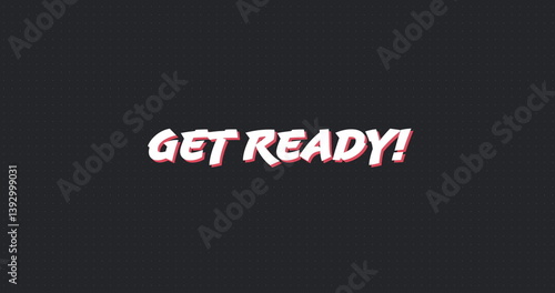 Obraz premium Image of the words Get Ready in white letters with red and blue graphic...