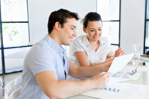 © Sergey Nivens, Obraz premium Image of two young business people in office