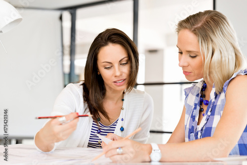 © Sergey Nivens, Obraz premium Image of two young business women in office