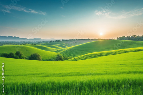 Obraz premium Image of vast, lush green field under bright, clear sky