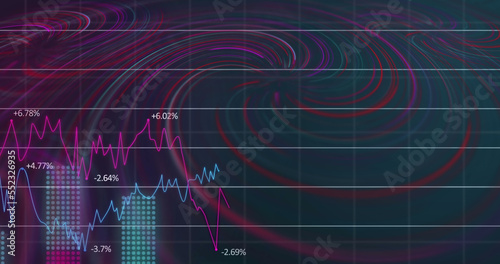 © vectorfusionart, Obraz premium Image of waves over financial data on black background