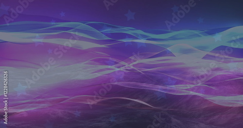 © vectorfusionart, Fototapeta premium Image of white stars over moving shapes