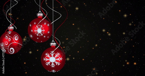 Fototapeta premium Image of yellow stars over christmas baubles