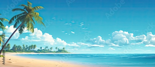 Fototapeta premium Image showcasing a summer scene with a beach and a clear sky, providing...