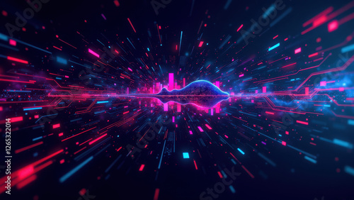 Fototapeta premium Image shows a dynamic digital landscape representing ci/cd, docker, kubernetes, and devops themes with vibrant colors and abstract shapes.