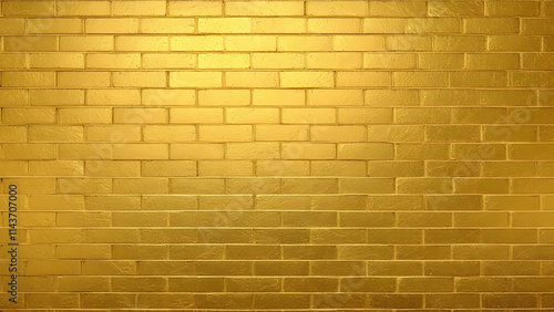Fototapeta premium Image shows a fullframe shot of a brick wall painted gold. The bricks are uniformly colored with subtle texture variations. The lighting creates a slightly brighter center.