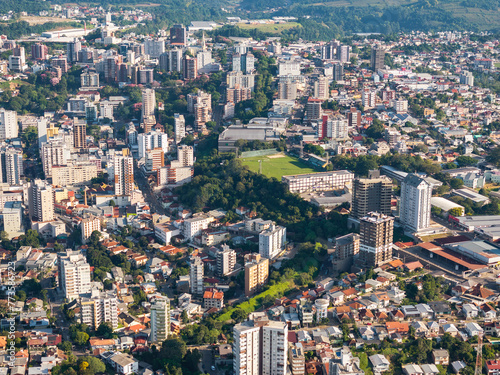 Obraz premium Imagem aérea da cidade de Bento Gonçalves, Rio Grande do Sul em 2024.