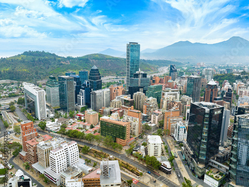Naklejka premium Imagem aérea de Santiago do Chile durante primavera.