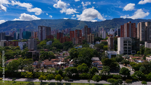 © LUISEFEVIDEOS, Obraz premium Imagen aérea tomada desde el sur de la ciudad de Medellín, cerca al río del mismo nombre.