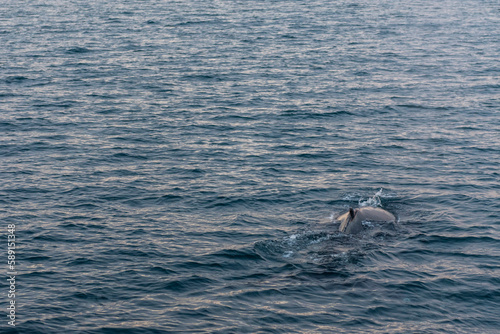 © carles, Fototapeta premium Imagen de la espalda de una ballena jorobada saliendo del mar