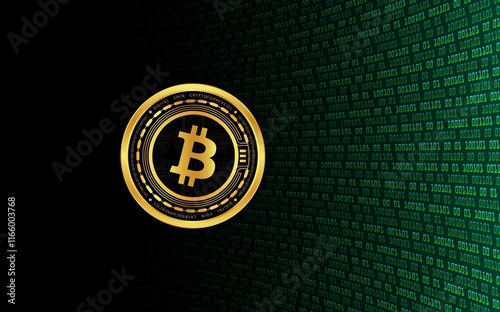 © akif, Fototapeta premium images of the bitcoin-btc logo on a digital background. 3d illustrations.