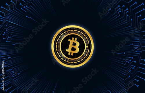 © akif, Fototapeta premium images of the bitcoin-btc logo on a digital background. 3d illustrations.