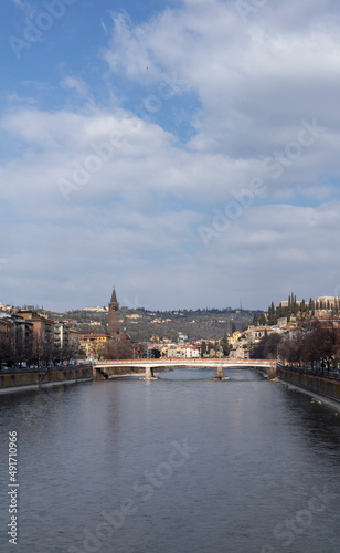 Fototapeta premium Images of the city of Verona in Italy. Classic buildings, bridges over the...