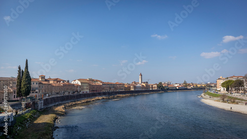 Obraz premium Images of the city of Verona in Italy. Classic buildings, bridges over the...