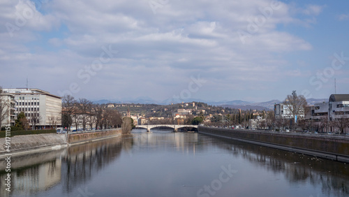 Obraz premium Images of the city of Verona in Italy. Classic buildings, bridges over the...