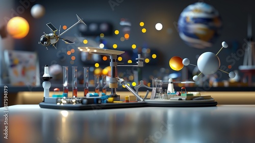 © patpongstock, Obraz premium Imaginative Space Exploration Scene with Educational Elements