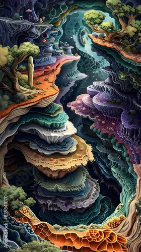 Fototapeta premium Imaginative Stylized Interpretation of Earth s Internal Structure as Vibrant Organic Geological
