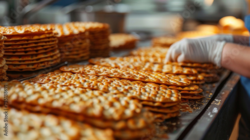 Fototapeta premium Imagine a Passover matzo bakery bustling with activity as workers knead, roll, and bake matzo, the unleavened bread central to the Passover holiday