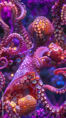 © panyawatt, Fototapeta premium Imagine a robotic octopus elegantly gliding through a neon coral reef