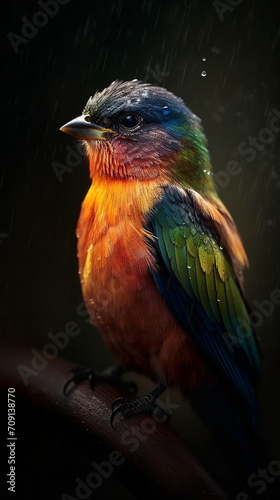 Fototapeta premium Imagine a small bird, battered by a storm, continuing its flight despite the fierce winds and pelting rain created with Generative Ai