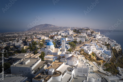 Fototapeta premium imerovigli, Santorini island with colorful volcanic cliffs and deep blue sea aerial view