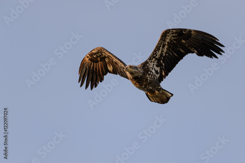 Fototapeta premium Immature Bald Eagle Flight at You with Bent Wings