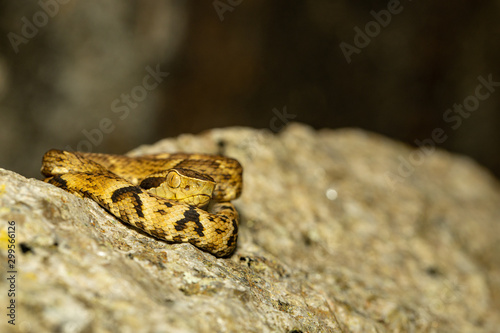 Fototapeta premium Immature jaracara snake in ambush position - Bothrops jaracara