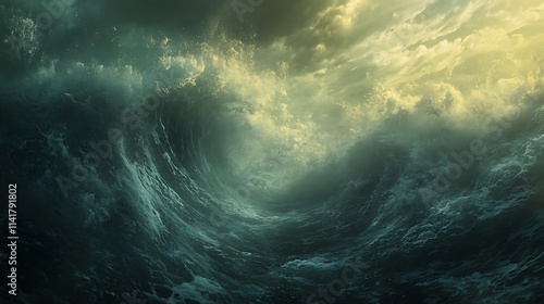 © gita, Fototapeta premium Immense ocean wave under stormy sky.