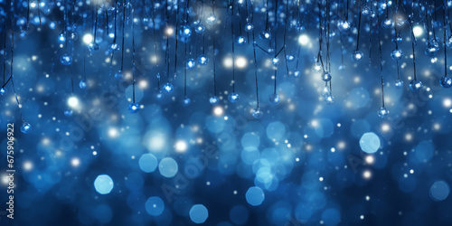 Fototapeta premium Immerse in the Christmas cheer with this vibrant background adorned with festive lights over a serene blue backdrop, creating lively and gritty tableaus.