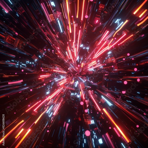 Fototapeta premium Immerse viewers in a futuristic cityscape with neon lights casting a vibrant pink