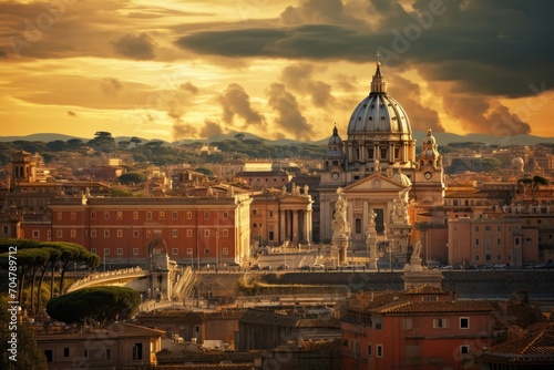 Fototapeta premium Immerse yourself in the breathtaking views of the city of Rome at sunset,...