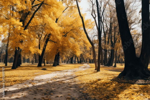 Naklejka premium Immerse yourself in the picturesque beauty of autumn where a bright yellow...