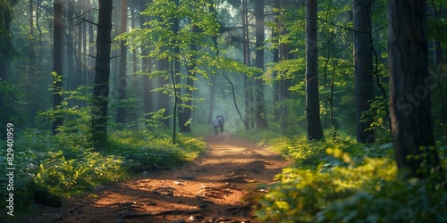 © Matus, Obraz premium Immersed in Nature: Hiking with Friends, generative ai
