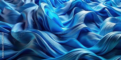 Obraz premium Immersive panoramic view of abstract blue fabric waves, rendered in 3D,...