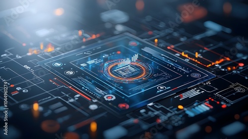 Obraz premium Immersive Virtual 3D Business Intelligence Platform Featuring Abstract...