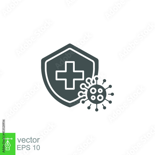© Suncheli, Obraz premium Immune from flu germ icon. virus protection, hygiene shield, bacterial prevention. Stop bacteria and viruses Coronavirus prohibition sign. Solid Vector illustration Design on white background. EPS10