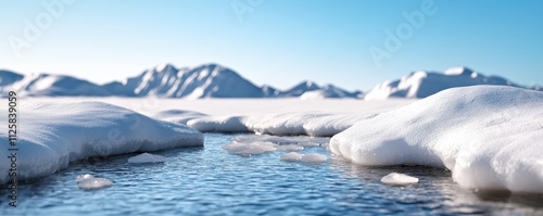© เด็กชาย นุ่มนิ่ม, Obraz premium impact result environmental concept. Serene winter landscape with snow and water reflections.
