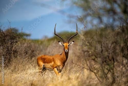 © Erich, Naklejka premium Impala Antelope standing in the grass of the Savannah at Samburu national park in Kenya