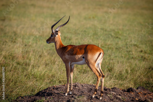 © DavidEnFoco, Obraz premium Impala Macho con Cuernos Majestuosos en la Sabana Africana de Kenia