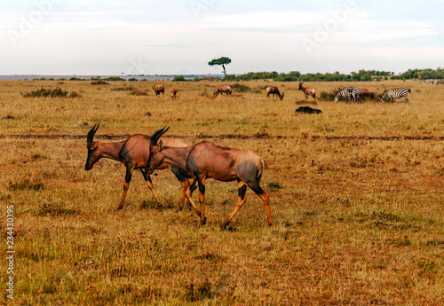 © Tomas, Fototapeta premium Impalas in the jungle of Kenya under a cloudy sky