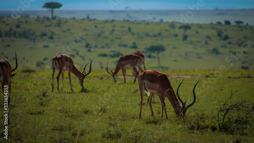 © KrumpyOne, Naklejka premium Impalas on pasture