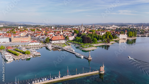 © DANLIN Media GmbH, Fototapeta premium Imperia Statue Drohnenaufnahme von Konstanz am Bodensee